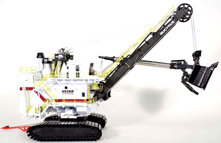 Bucyrus-Erie 495HF mine shovel, Liebherr 996 mine shovel (to benefit St. Jude Hospital), 1 of 100 Gilson Riecke TD-9 crawler, 1950s Product Miniatures IH UD-24 cigarette dispenser, 1 of 750 CCM CAT D9L dozer & scraper, 1 of 550 CCM CAT 776 truck, Gilson Riecke CAT No. 40 Scraper