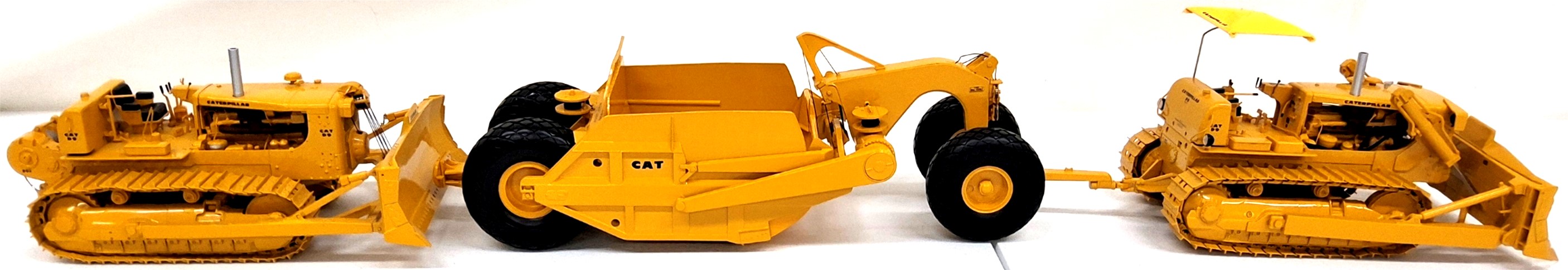 1 of 100 CAT 491 Scraper with D9E & D9D dozer pair made for Oregon Steam-Up, CAT DW20 w/ Scraper, CAT wheel loaders, mine trucks, dozers & construction diecast, German construction replicas, First Gear 1/16 IH & Allis dozers, loaders & scrapers, 1/16 Ertl Precision JD 544J loader & 650H dozer, Ertl boxed construction John Deere, IH & Ford construction toys from the 1960’s, 70’s & 80’s, 1950’s Reuhl Caterpillar pull type Ripper, Reuhl JD 840 with 400 Scraper, CAT 784C TowHaul lowboy, 100 Years CAT D11R, CZM EK160 drilling rig, Ant. Hubley grader, 1950’s Doepke, Structo & Nylint construction toys, Keystone Ride’em steam shovel from the 1920s, Case 150 Years Loader/Backhoe, Komatsu & Vermeer replicas