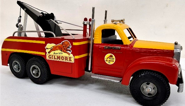 1 of 225 Fred Thompson Smith-Miller Gilmore wrecker, 1 of 300 Thompson S-M Shell tanker & Hostess delivery w/ pup, Kenny Wulf custom Smitty Toys ramp truck w/ rat rod pickup, Kenny Wulf custom bottom-dump semi