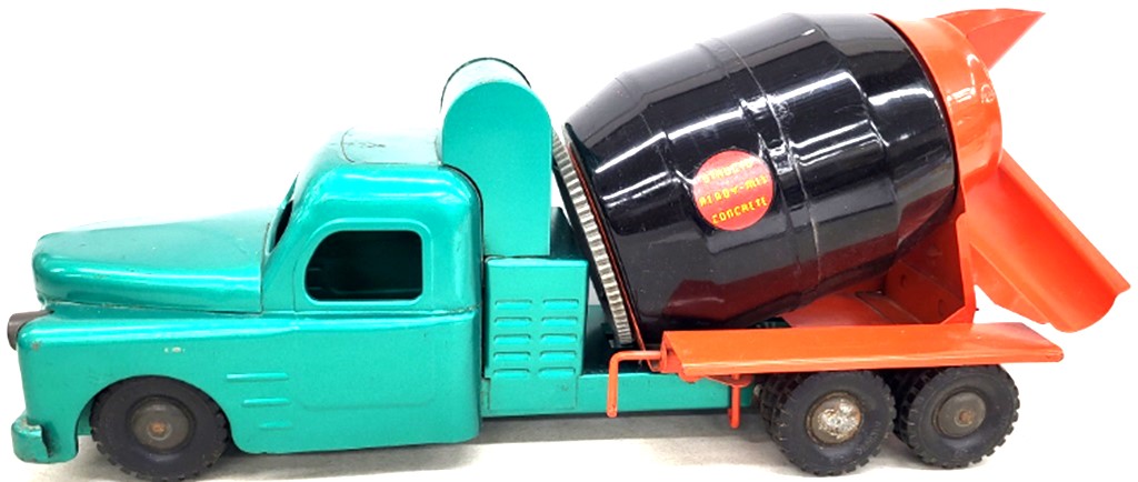 Pressed Steel dump trucks by Structo, Turner & Metalcraft ranging from 70 to over 100 years old, 100yr old Buddy L Aerial Fire Truck, Handmade Wooden heavy hauler & grain semi, Landoll trailers, 1970s Ertl IH farm truck in blue box, Ertl dump truck in box, Nylint semi trucks, 1970 Chevy Wrecker by Greenlight, Hwy 61 grain truck, 1 of 500 Tonkin Peterbilt 379 badged for Western Distributing, Collection of Badged 1st Gear trucks, Corgi Heavy Haulage set, & American Carriers, SpecCast & DCP semi trucks, Tonka trucks in original, restored & custom by Duane Farr, Buddy L delivery van, Hubley wrecker, Buddy L Colt & Camper, Tonka Jeep wrecker, Smith-Miller Navy flatbed & Custom Smith-Miller Army half-truck by Duane Farr, 75 yr old Smitty hand-crank GMC dump truck, 1957 Tonka rescue squad & Custom Holsum bread Metro van, 1950s Marx PanAm & American Airways pressed steel airplanes, Tip-Top No. 200 Giant Flyer, Tin litho windup & battery-op Army Tanks by Marx including WW 1 Doughboy, Jumpin Jeep, 95 year old Anti-aircraft geared gun by Marklin of Germany, Vintage Big Bang field cannon by Conestoga Co, Mighty Tonka 25th Anniversary Silver dump truck in sealed box, Franklin Mint 1885 Daimler motorcycle, 100 yr old Arcade cast iron blue fageol bus, Custom 1920 Buddy L semi