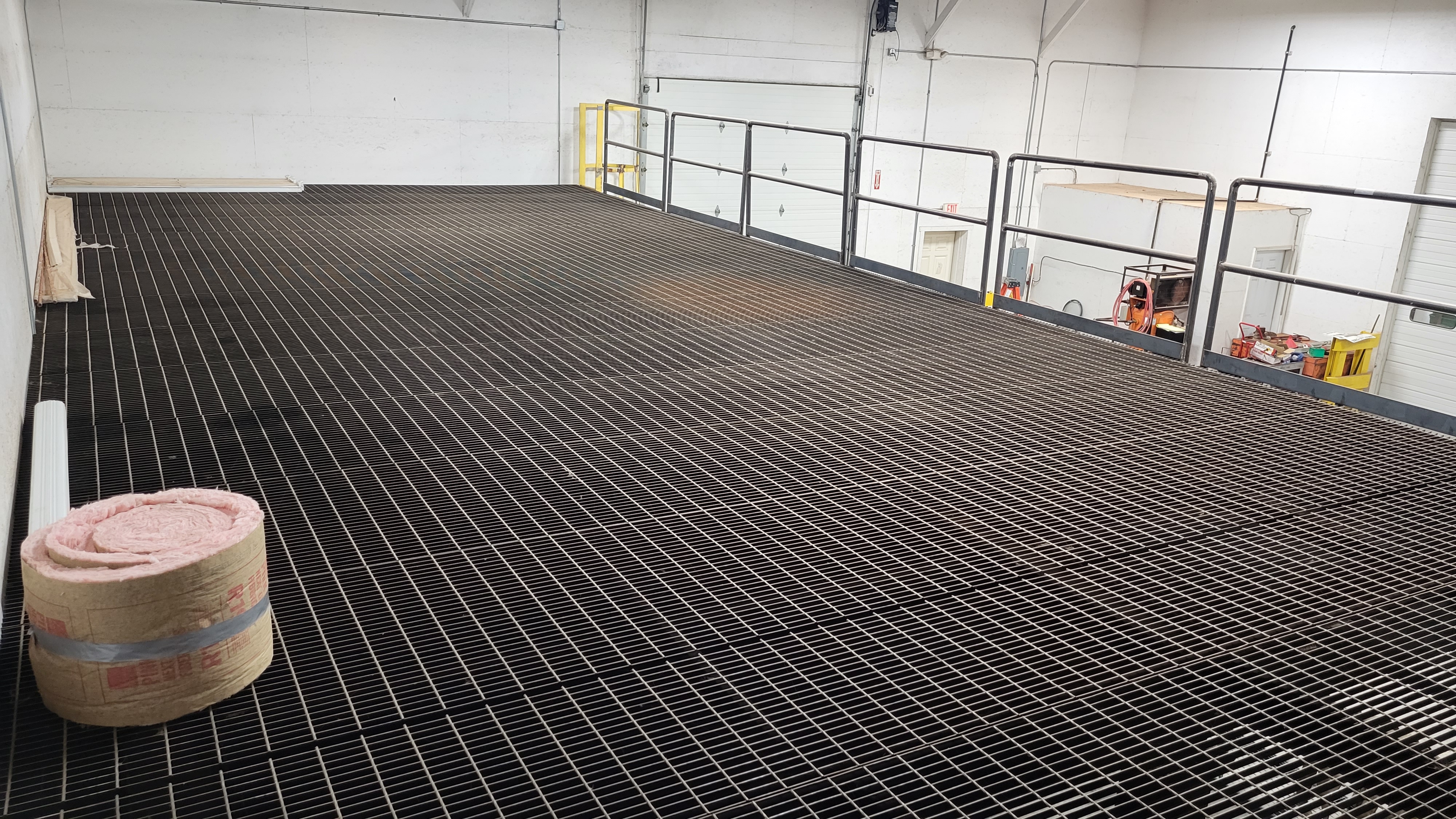 20x50ft Mezzanine Deck with grated floor, 12” I-beam frame & over 8ft clearance underneath