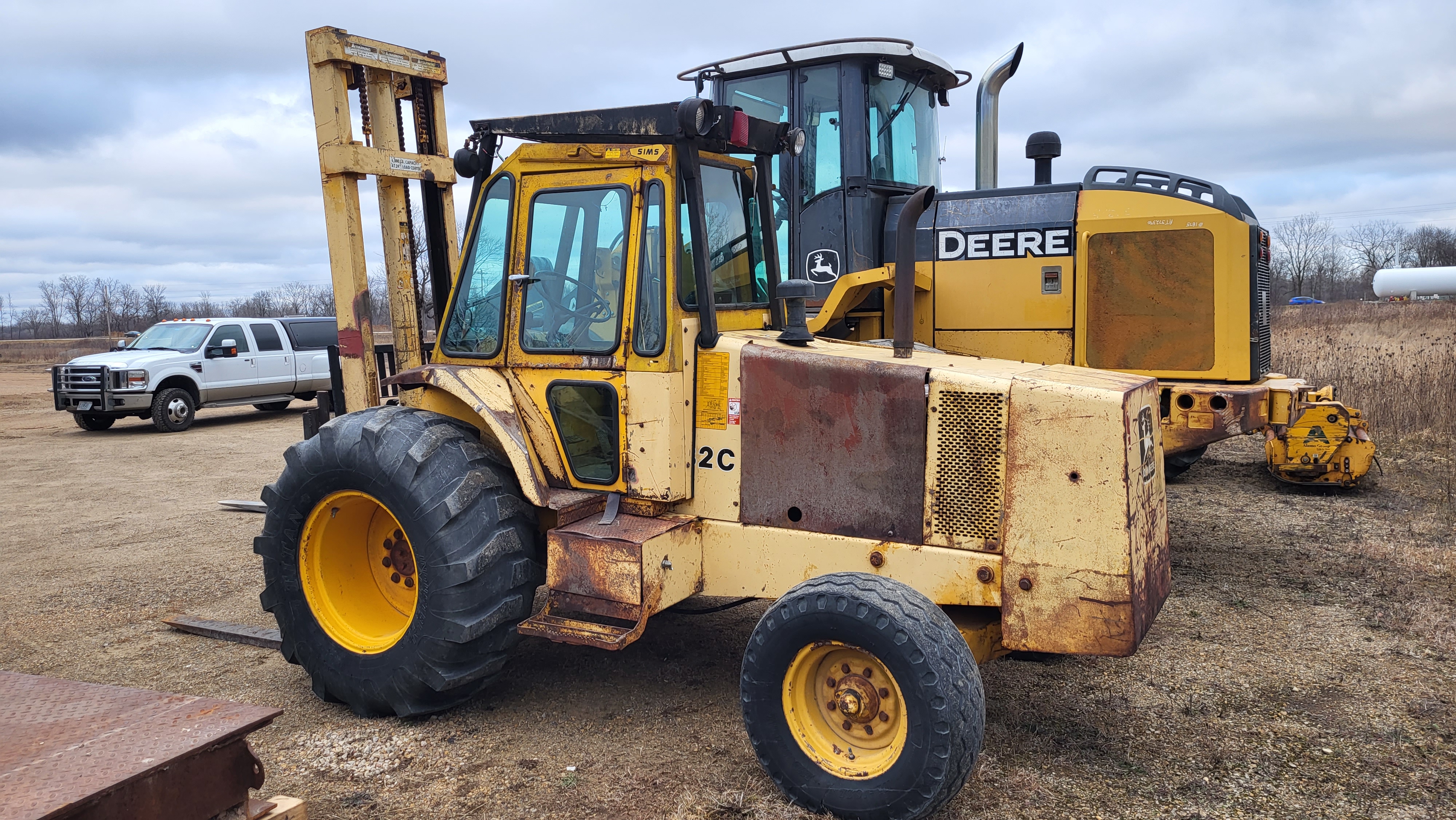 John Deere 482C tractor Forklift, diesel with hyd shuttle,6,000# lift, side-shift & 48” forks