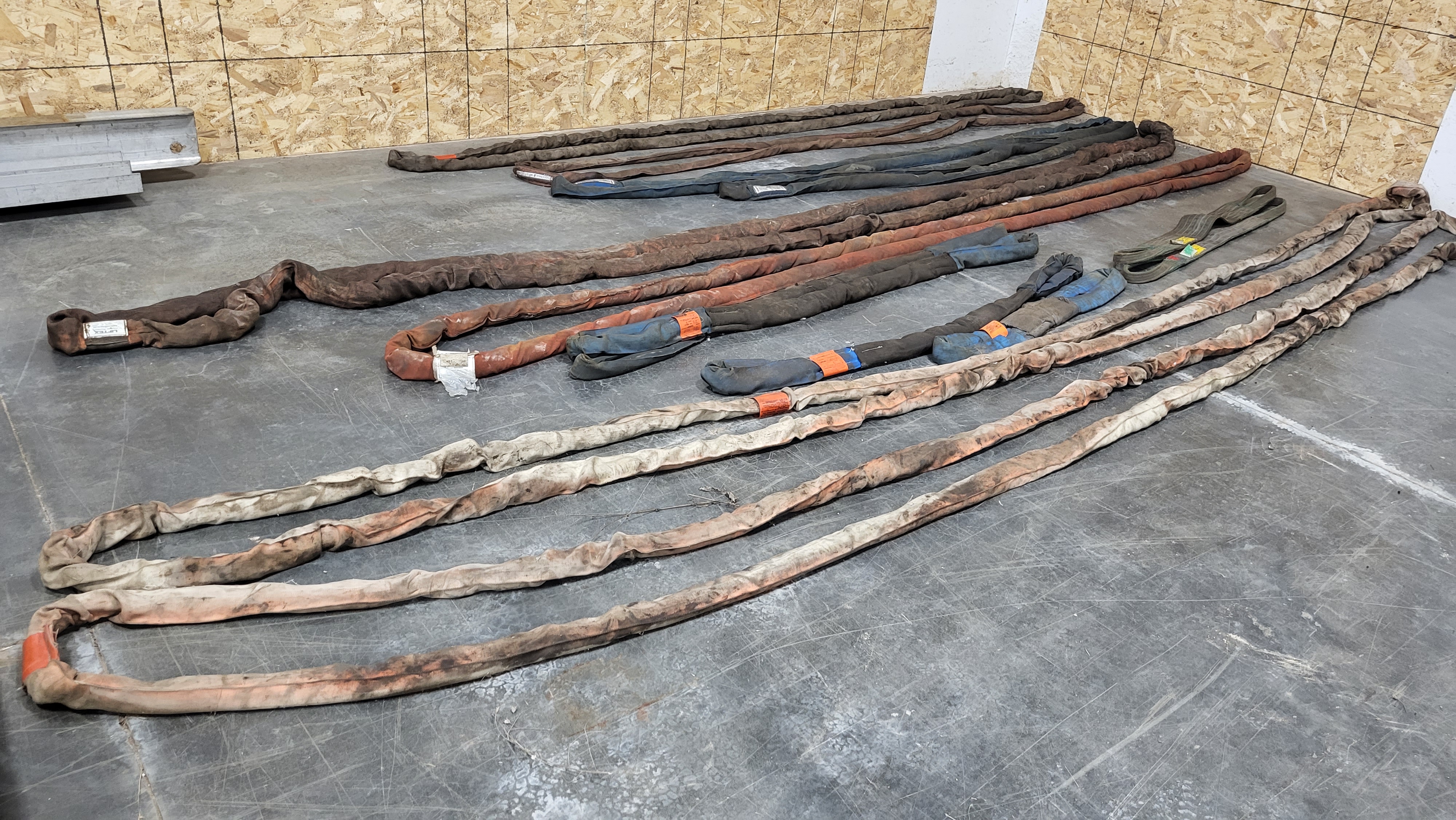 5” Aluminum C-channel 23ft long, 8” Aluminum I-beam 23ft long, 6” Steel I-beams 20ft long, Certified Nylon Lift Slings from 5 to 20ft long